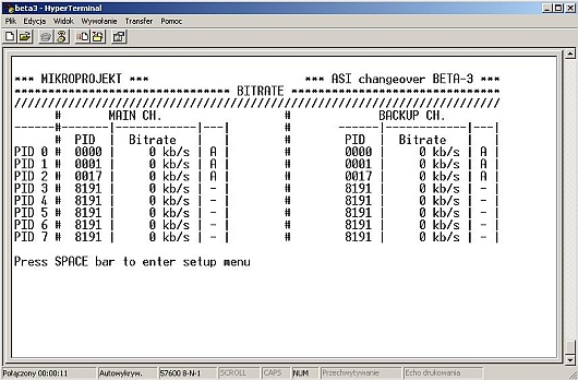 Dodatkową funkcją changeovera jest pomiar bitrate-u monitorowanych PID-ów.: