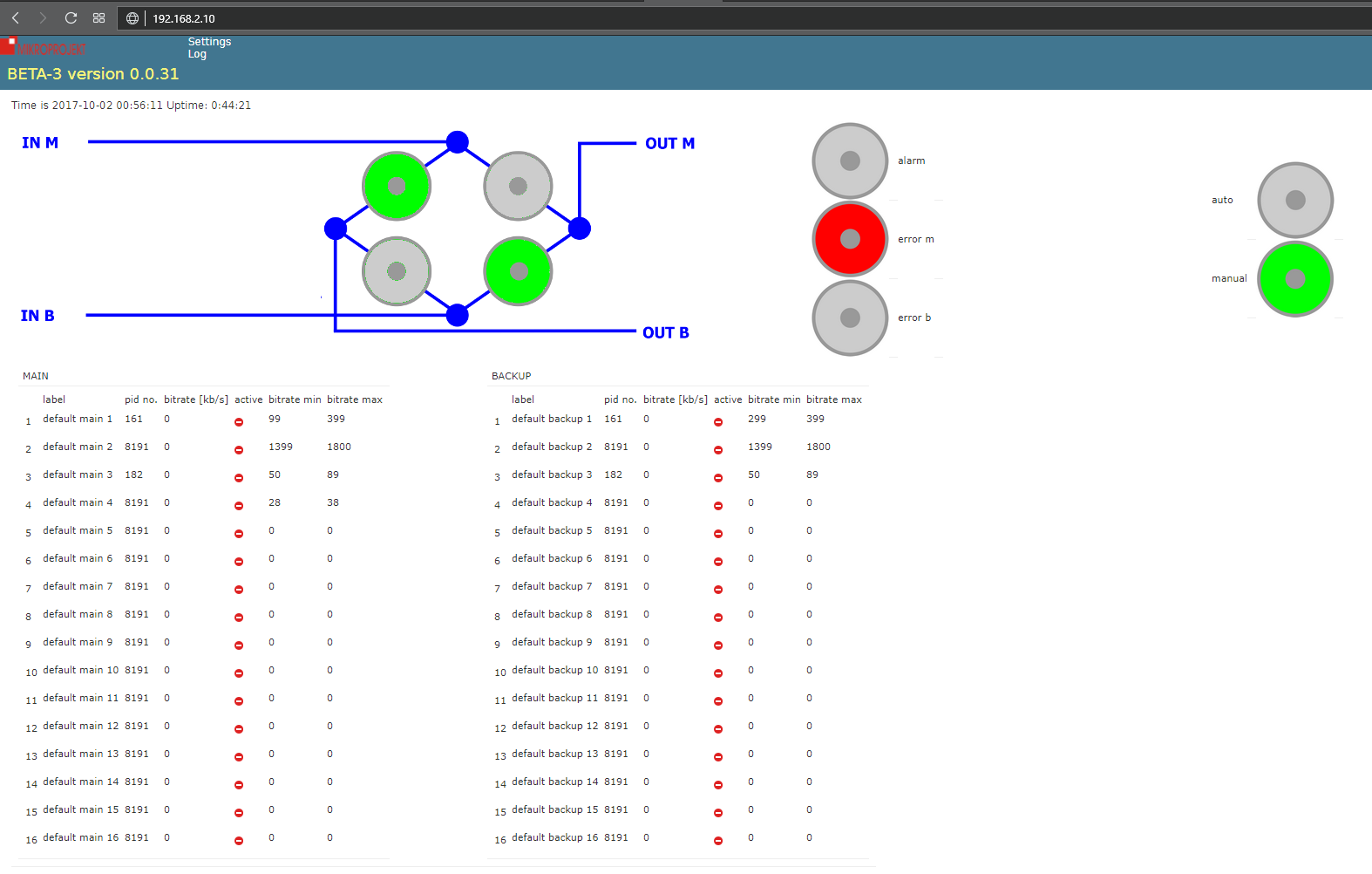 Dodatkową funkcją changeovera jest pomiar bitrate-u monitorowanych PID-ów.